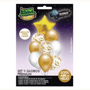 SET GLOBO LATEX CON CONFETTI Y MYLAR ORO DX
