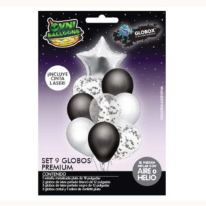 SET GLOBO CROMADO PLATA Y NEGRO GLOBOX