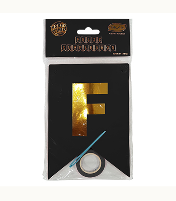 BANDERIN BRILLO NEGRO FELIZ CUMPLEAÑOS ORO DX